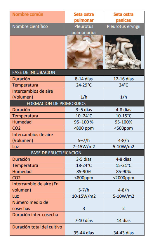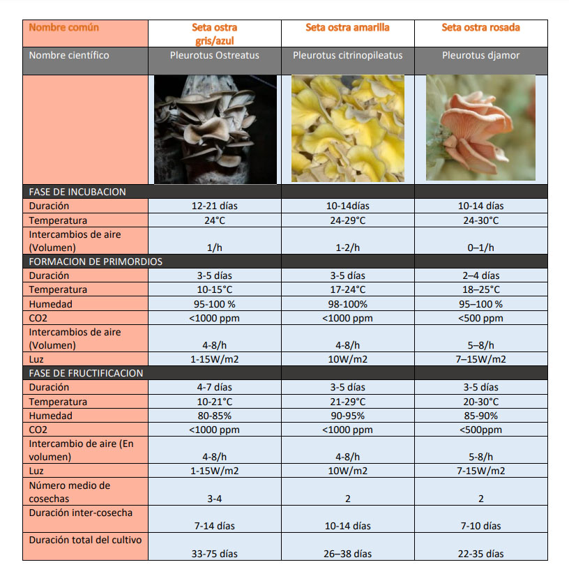 VII. Parámetros técnicos de cultivo de setas ostra